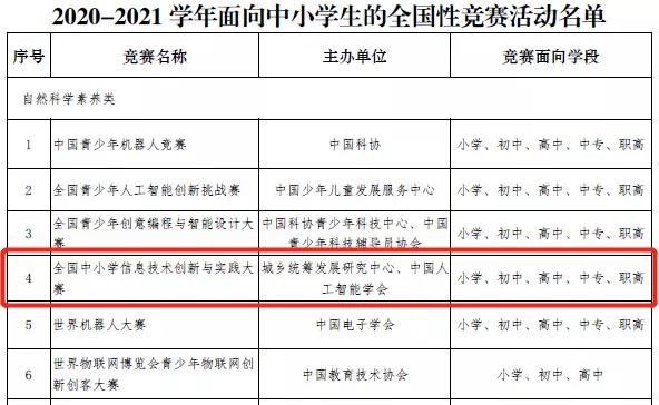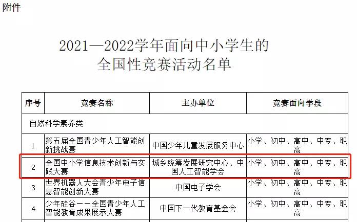 關于舉辦2021-2022學年全國中小學信息技術創新與實踐大賽(第20屆NOC)的通知