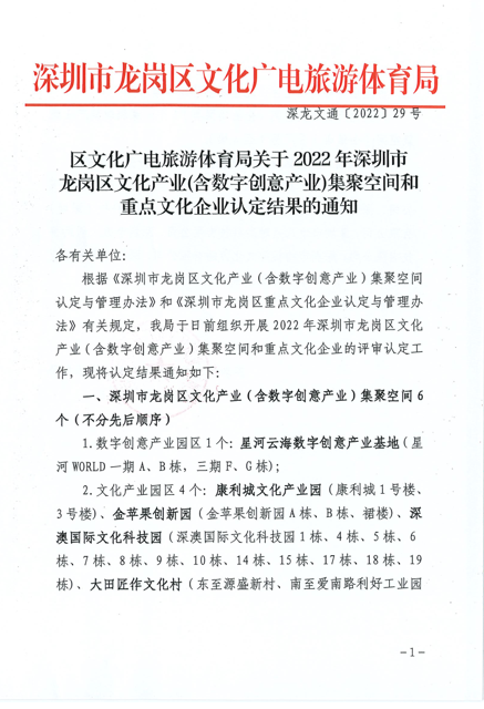日前,根據《深圳市龍崗區重點文化企業認定與管理辦法》有關規定,我司通過龍崗區文化廣電旅游體育局組織開展的2022年深圳市龍崗區重點文化企業的評審認定工作,正式被認定為“深圳市龍崗區重點文化企業”。