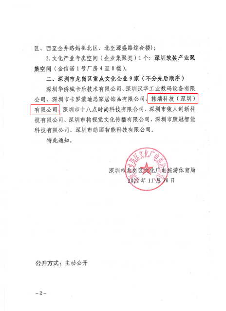 韓端科技獲深圳龍崗政府認定重點文化科技企業,啟航2023新征程!