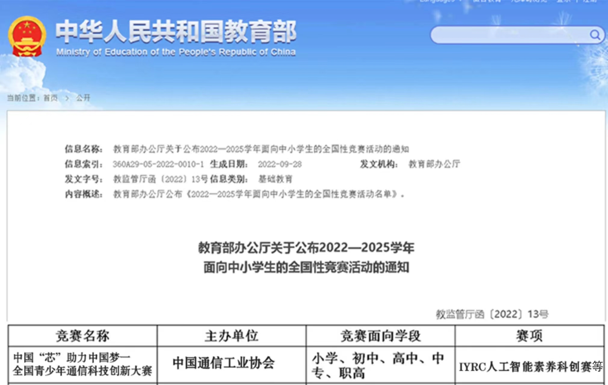 IYRC人工智能素養(yǎng)科創(chuàng)賽(全國(guó)賽項(xiàng))