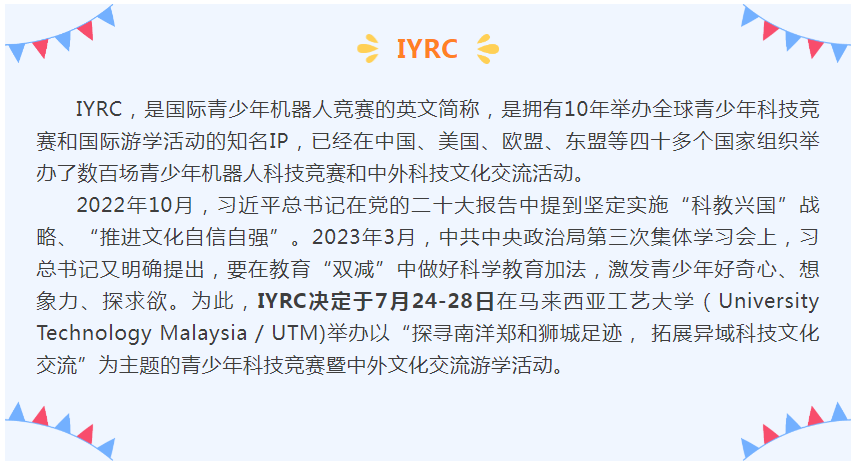 關于舉辦2024IYRC國際青少年機器人競賽(新馬)邀請賽暨科技研學活動的通知