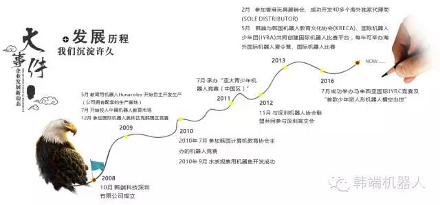 韓端科技(深圳)有限公司是是全球最早從事教育機器人事業(yè)的頂級企業(yè)之一。公司成立于2008年,由韓國、中國、香港三方友好合資經(jīng)營,業(yè)務涵蓋教育機器人的研發(fā)設計、生產(chǎn)銷售、品牌運營、教研教育、課件開發(fā)五大板塊。作為一家注冊在中國的高新技術企業(yè),公司擁有全球?qū)@野l(fā)明專利、實用新型、外觀專利、軟件著作權等知識產(chǎn)權幾百項。公司自成立以來,已持續(xù)在全球推出了HUNA MY ROBOT TIME(MRT)、KICKY、GOMA、BRAIN、CREATIONS、LAND、DINOSAURS、ROBOT HEROES、ROBOT FISH-MIRO、CORE等品牌。