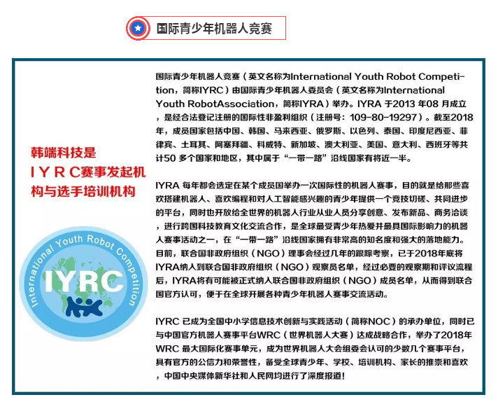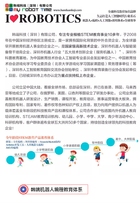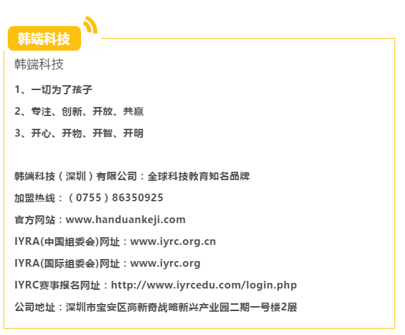 友情鏈接:IYRC賽事報名系統天貓韓端官方旗艦店全國信息技術標準化技術委員會教育技術分技術委員會NOC全國中小學信息技術創新與實踐大賽中國電子學會深圳科普網北京師范大學科大訊飛邁思騰機器人編程江蘇雄孩子機器人韓納機器人少兒編程北大博雅瑞特深圳梅林一村幼兒園深圳新安教育集團持續更新